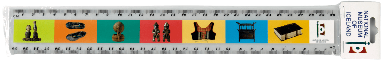 Ruler, two types. One with black and white photographs from the National Museum of Iceland Photo gallery. The other one decorated with photographs of main artefacts from the museum.