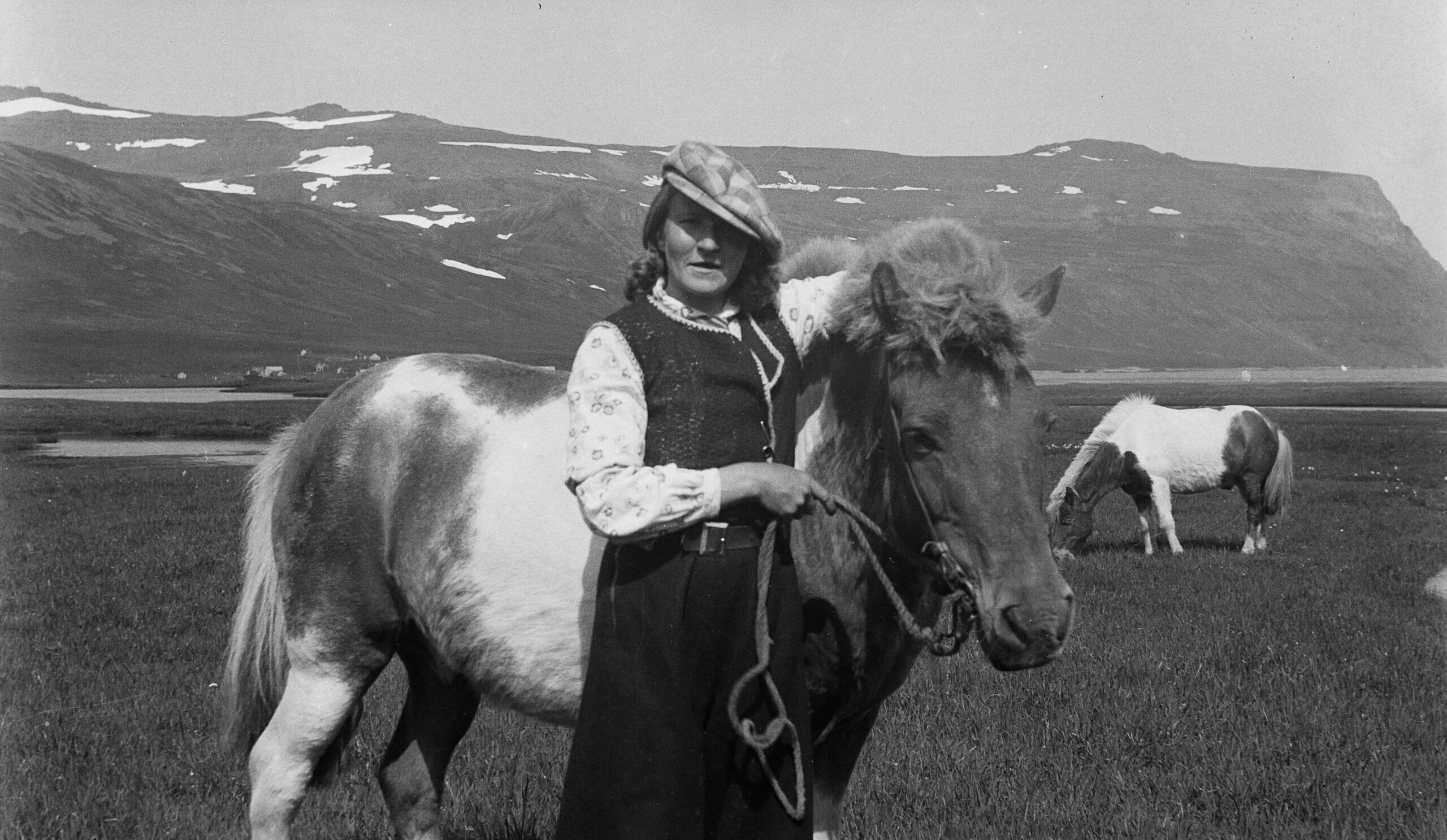 Woman and her horse in Furufjörður in Western part of Iceland. Photo taken in 1939 by Hjálmar R. Bárðarson 1918-2009.