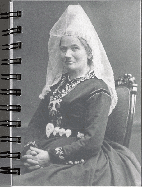 Minnisbók. Kona í Skautbúning. Lítil og nett A6 minnisbók, fyrir allt sem þarf að muna. Myndin á bókinni er af íslenskri konu í skautbúningi.