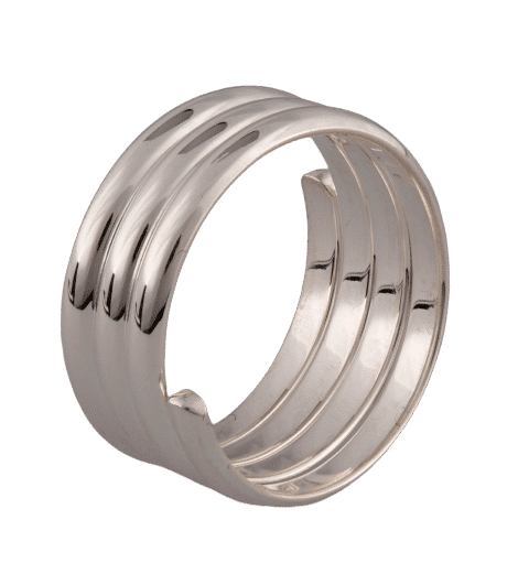Silfurhringur, snúinn. Endurgerð kvenhrings úr silfri, skemmtilega snúinn, með þreföldum snúningi. Innan á frummyndinni, sem er úr gulli og fannst í Hruna, er grafið nafnið Halldóra Jónsdóttir.