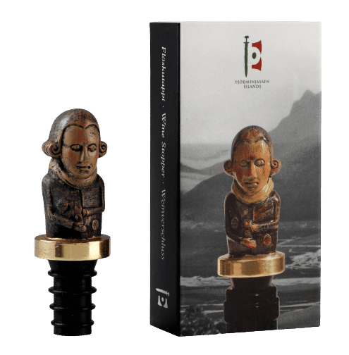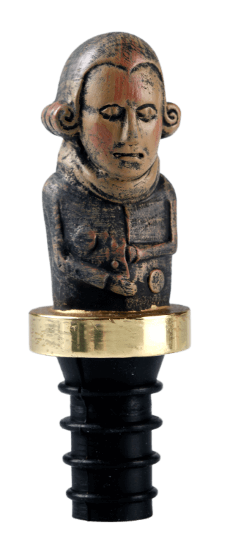 Flöskutappi. Fallegir og vandaðir flöskutappar. Eftirgerð af útskurði. Fyrirmyndin eru hjón, uppruni ókunnur. Klæðnaður mannsins gæti verið frá því um 1800. Frá Munkaþverá í Eyjafirði.