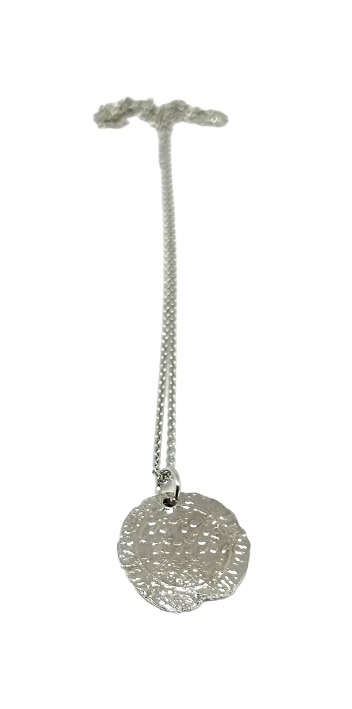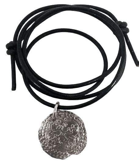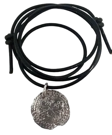 Hálsmen mynt úr silfri. Eftirgerð af mynt úr silfri í leðurbandi eða á keðju.