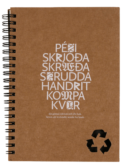 Minnisbækur – úr steinapappír. Fallegar 70 síðna minnisbækur, önnur er með sex gömlum íslenskum orðum yfir bók á forsíðunni, hin er með fallegu merki Þjóðminjasafnsins.