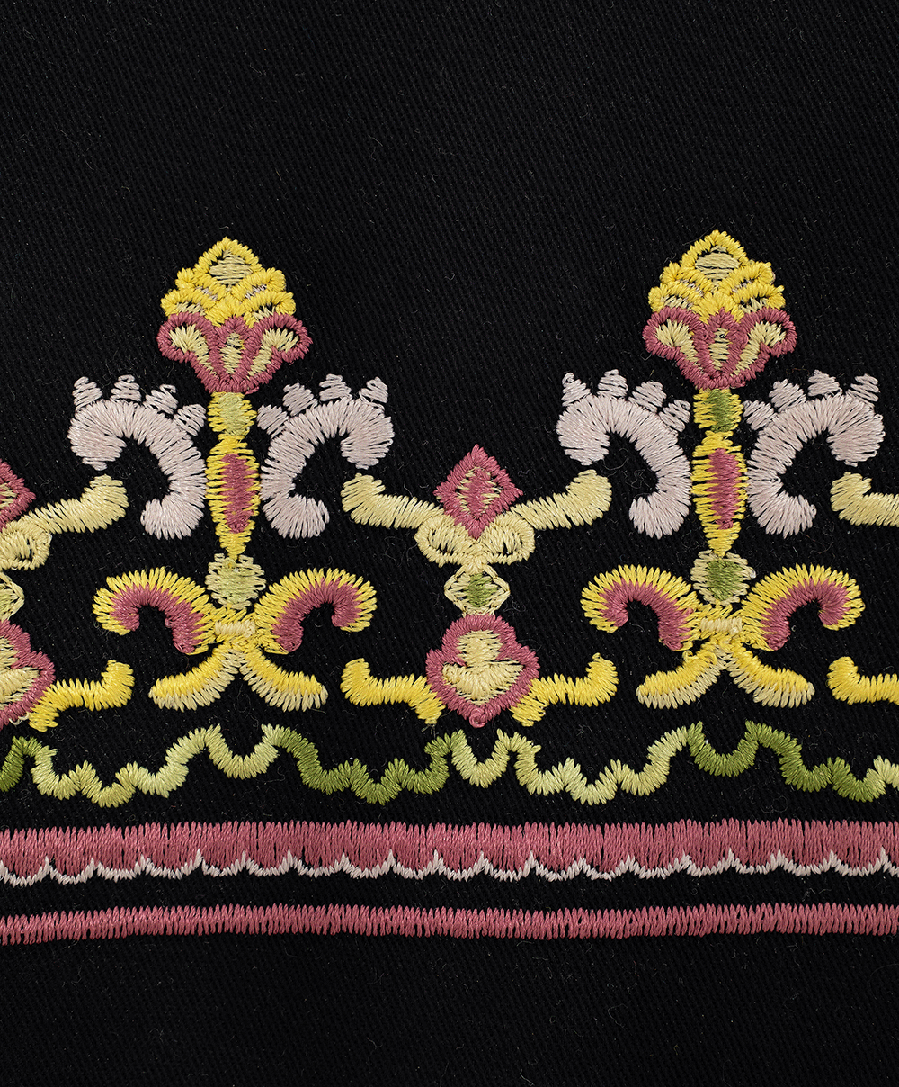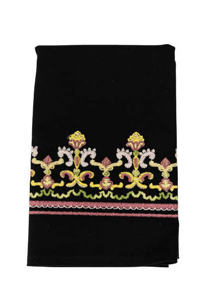 Fallegt mynstur á svörtu bómullarefni, mynstrið er vélsaumað í efnið úr gæða bandi. Stærð 35×35 cm.