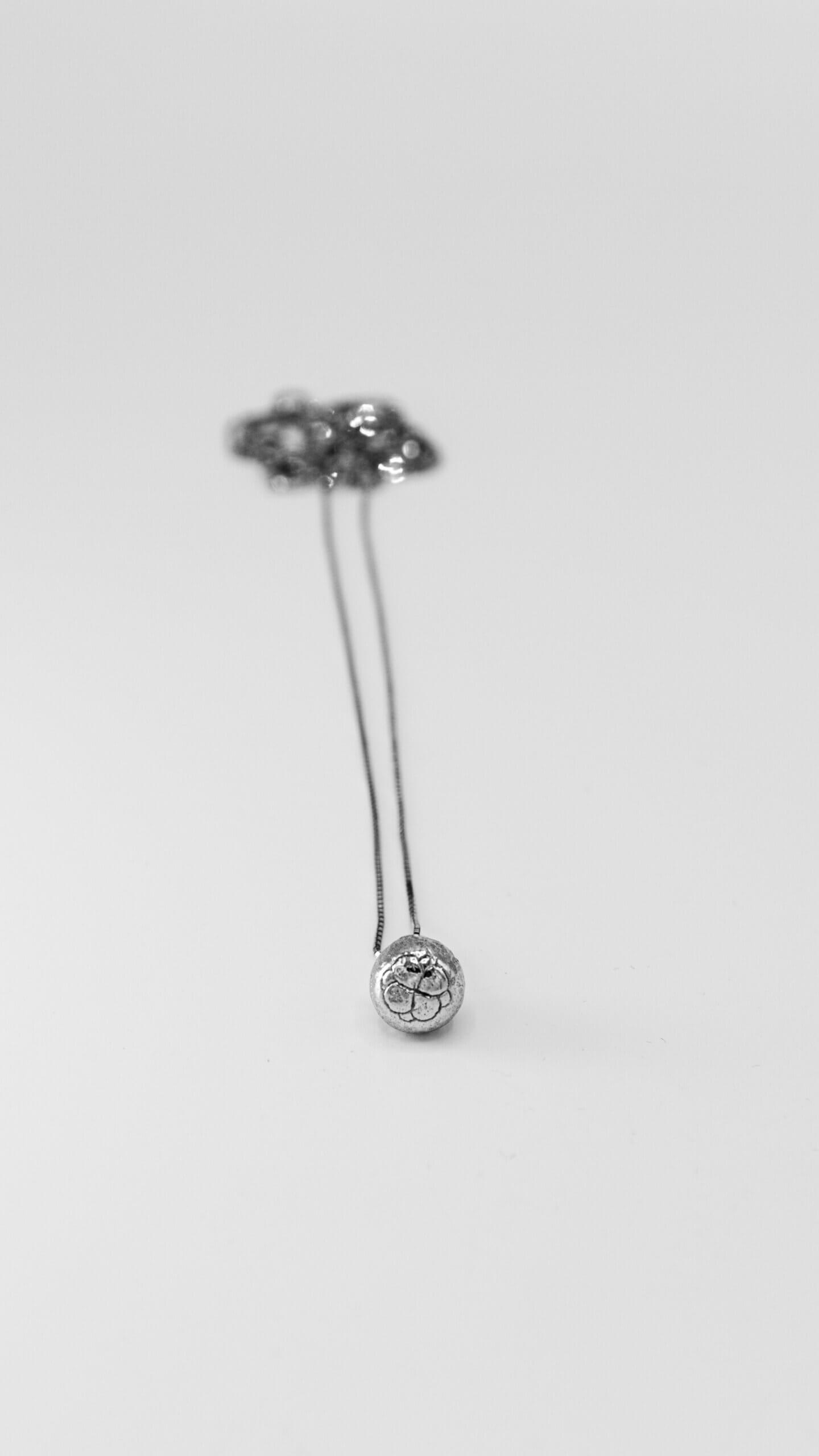 Silfurhnappur í keðju frá Skriðuklaustri, með blómamynstri. Eftirgerð úr silfri eða oxideruðu silfri.