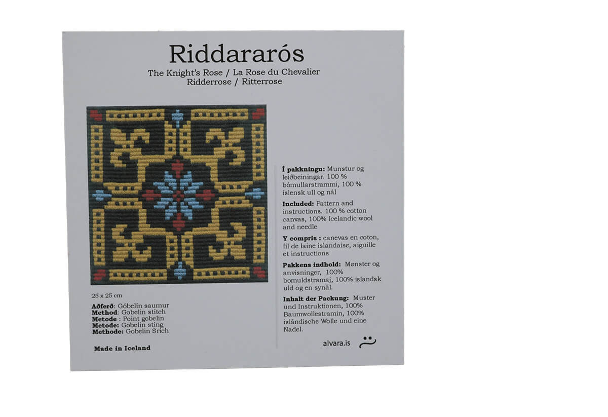 Þessi Riddararós er byggð á mynstri úr sjónabók Jóns Einarssonar bónda og hagleiksmanns í Skaftafelli á 18. öld. Bókin hefur að geyma mörg mynstur ætluð til hannyrða og þykir mikil gersemi. Hún er varðveitt í Þjóðminjasafni Íslands.