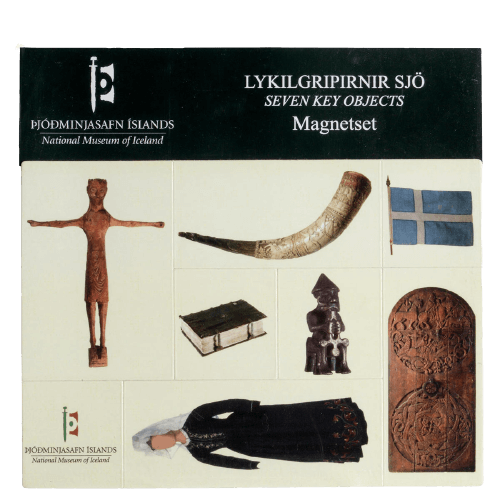 Sjö lykilgripir Þjóðminjasafnsins, í segulsetti. Á grunnsýningu Þjóðminjasafns Íslands, Þjóð verður til – Menning og samfélag í 1200 ár, eru sjö lykilgripir sem allir eiga það sammerkt að hafa haft þýðingu í íslensku samfélagi bæði á sínum tíma en ekki síður í gegnum aldirnar.