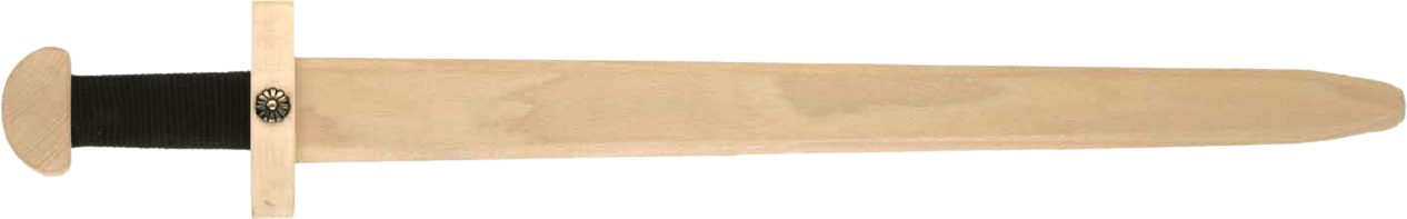 Víkinga trésverð 65 cm á lengd. Stórt víkingasverð, handfangið er vafið með brúnu bómullarbandi til að haldið verði öruggara, lítið málmskraut á handfanginu.