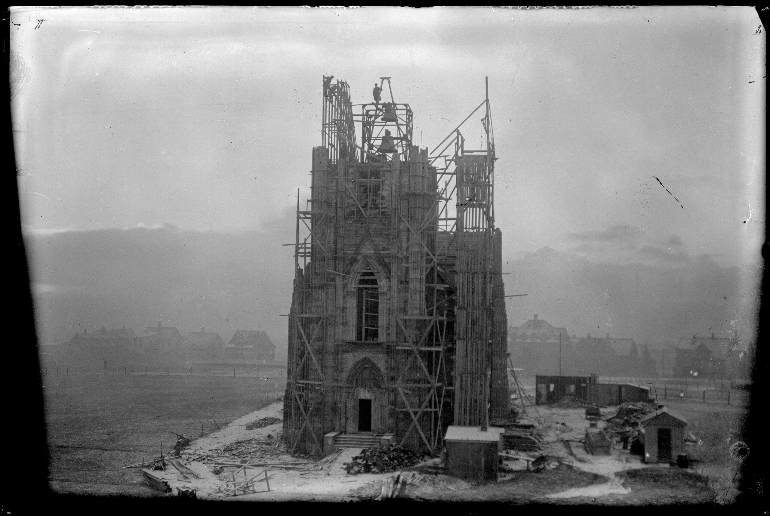 Landakotskirkja í byggingu, 1928. Ljósmyndari Þorleifur K. Þorleifsson 1882-1941.