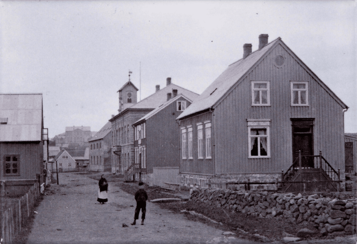 Kirkjustræti í Reykjavík, um 1883. // Kirkjustræti street in Reykjavík, ca. 1883.
