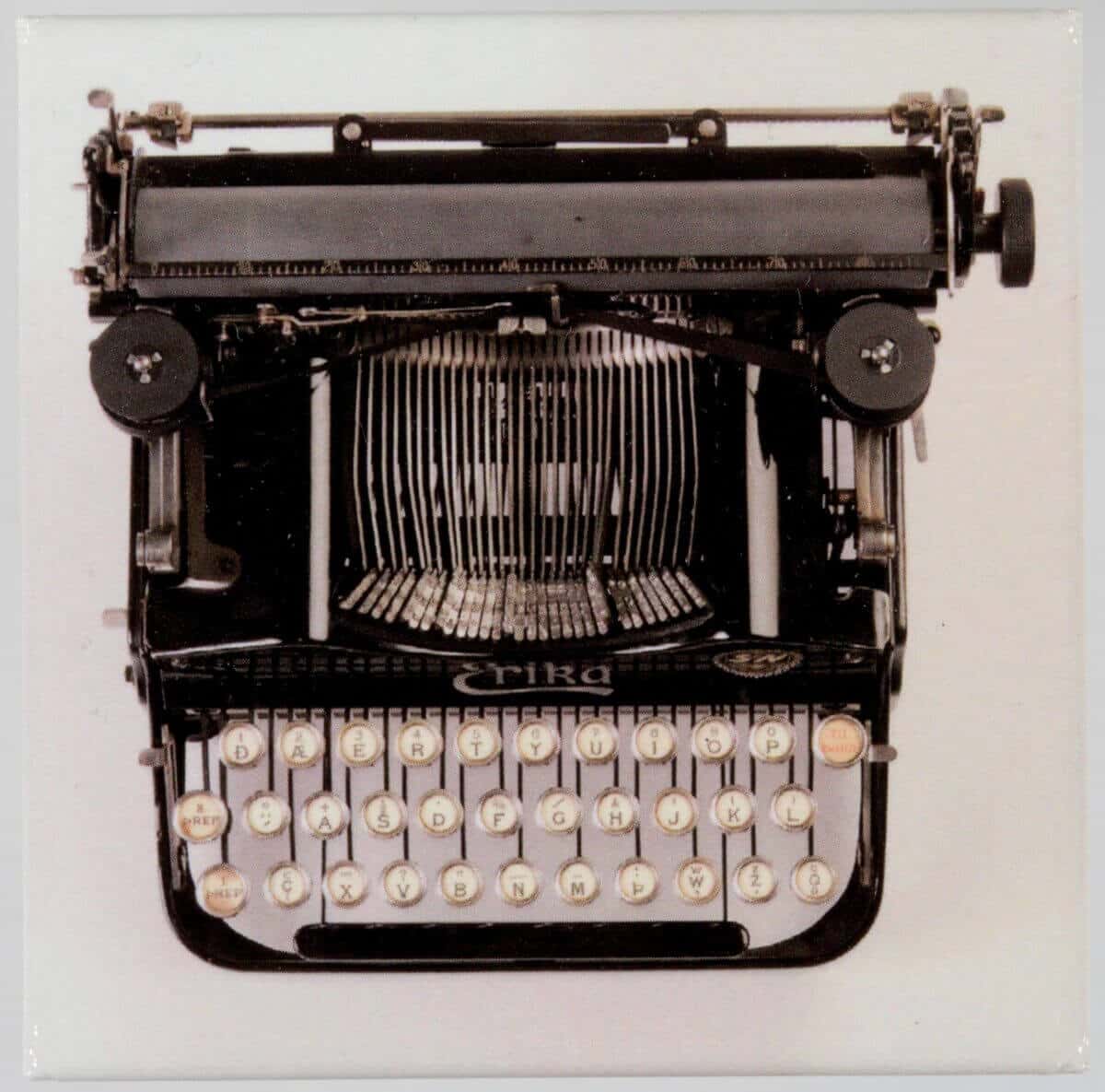Ísskápssegull með mynd af ritvél sem finna má á grunnsýningu safnsins.