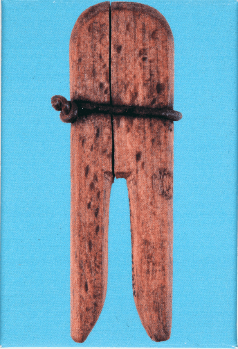 Ísskápssegull mynd af þvottaklemmu sem búið er að gera við.