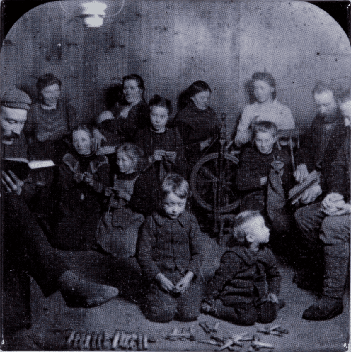 Segull. Vetrarkvöld á sveitaheimili í Víðum í Reykjadal 1906. Segull gerður í tengslum við sýningu á ljósmyndum Bárðar Sigurðssonar.